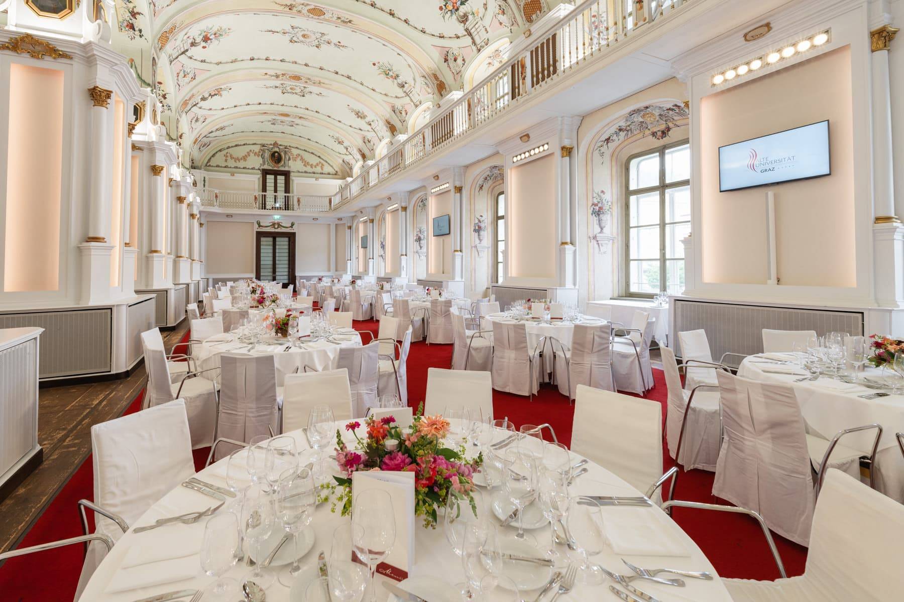 Im Herzen von Graz gelegen, vereint dieser Veranstaltungsort Geschichte und Moderne und bietet einen außergewöhnlichen Rahmen für Geschäftsevents. Mit über 1.000 Quadratmetern Fläche kann er bis zu 600 Teilnehmer beherbergen und ist somit der ideale Ort für Konferenzen, Seminare und Galas. Die Räume, ausgestattet mit modernster technischer Infrastruktur, sind darauf ausgelegt, innovative und fesselnde Erlebnisse zu fördern. Das historische Ambiente des Gebäudes, gepaart mit professionellem Service, sorgt für eine nahtlose Organisation Ihrer Veranstaltungen. Ob für einen Kongress, ein Bankett oder eine Präsentation, jeder Raum ist anpassbar, um den spezifischen Bedürfnissen Ihres Unternehmens gerecht zu werden. Der Catering-Service, geleitet von einem renommierten Koch, legt Wert auf hochwertige regionale Zutaten und bietet kreative Gerichte, die Ihre Gäste begeistern werden. Dieser prestigeträchtige Veranstaltungsort ist nicht nur ein Symbol des kulturellen Erbes von Graz, sondern auch eine strategische Wahl für Unternehmen, die beeindrucken und inspirieren möchten. Mit der Wahl dieses Raumes entscheiden Sie sich für ein unvergessliches Erlebnis, das einen bleibenden Eindruck hinterlassen wird.