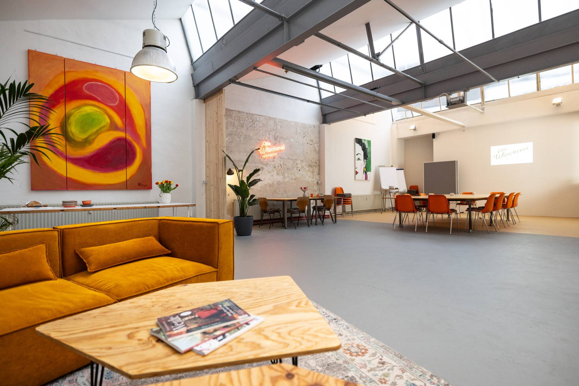 Dieser Seminarraum bietet einen einzigartigen und inspirierenden Rahmen für Ihre Unternehmensveranstaltungen in Nürnberg. In der Nähe der Altstadt gelegen, zeichnet er sich durch eine zentrale Lage aus, die leicht von der U-Bahn und dem Hauptbahnhof erreichbar ist. Der Raum, der früher eine Wäscherei war, wurde umgestaltet, um eine reine und angenehme Atmosphäre zu schaffen, die ideal für Workshops, Seminare und Besprechungen ist. Mit einer Kapazität von bis zu 40 Personen ist er mit modernen Annehmlichkeiten ausgestattet, darunter ein heller Projektor und schnelles WLAN. Die Teilnehmer können auch aus einem abwechslungsreichen Cateringangebot wählen, das von gesunden Frühstücken bis hin zu vollständigen Buffets reicht, die von qualitativ hochwertigen Cateringpartnern zubereitet werden. Die kreative und unkonventionelle Atmosphäre dieses Ortes fördert innovatives Denken und Zusammenarbeit. Darüber hinaus können zur Ausklang Ihrer Arbeitstage in entspannter Atmosphäre auch Entspannungsoptionen, wie Wein- oder Whisky-Verkostungen, organisiert werden. Ob für strategische Meetings oder Brainstorming-Sitzungen, dieser Raum besticht durch seinen historischen Charme und modernen Komfort.